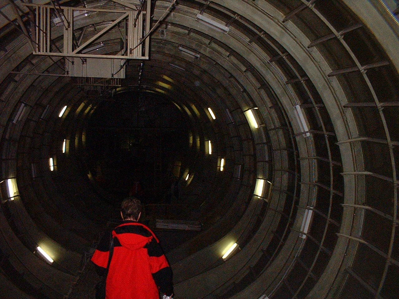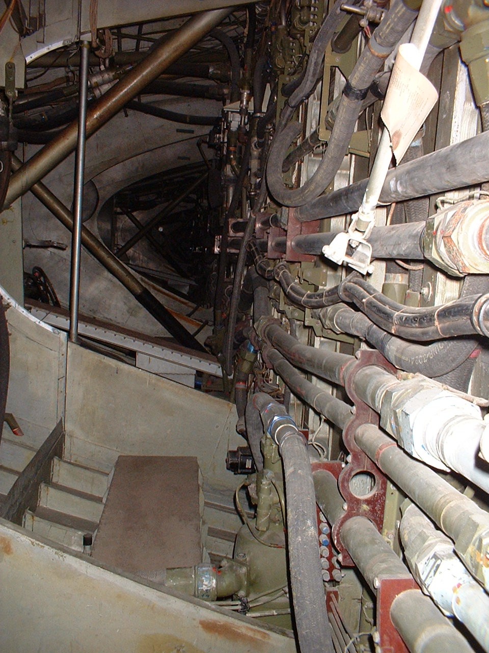 Wing interior. Inside the wing root. There was no lighting in the wing, so it was not actually possible to see the image in this photograph "live". This image is illuminated entirely by camera flash.