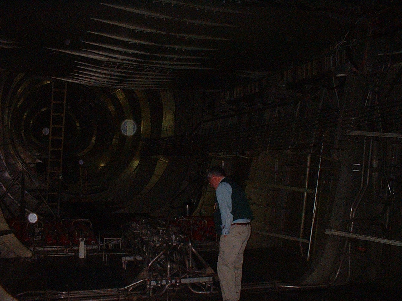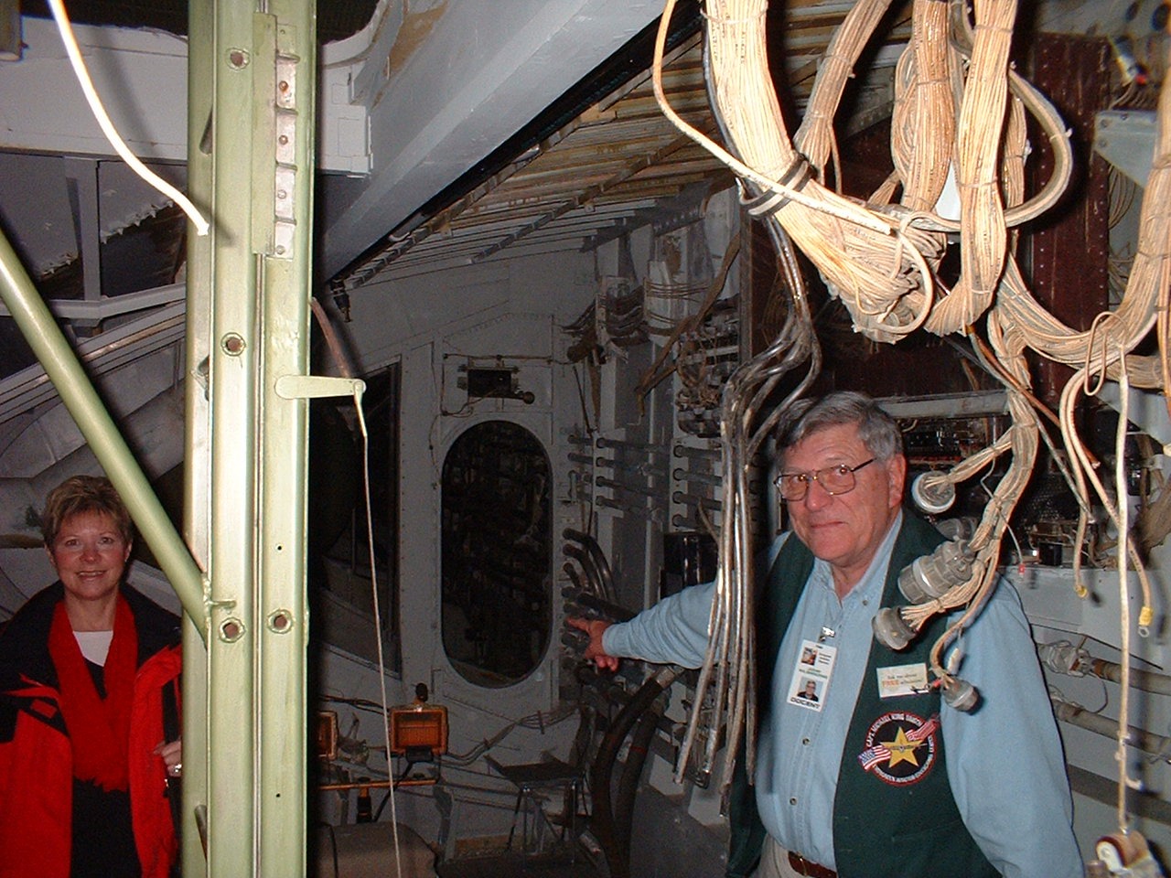 Wing root. Our guide, John, points to the entrance of the starboard wing root. A tall person could easily stand upright inside the wing.