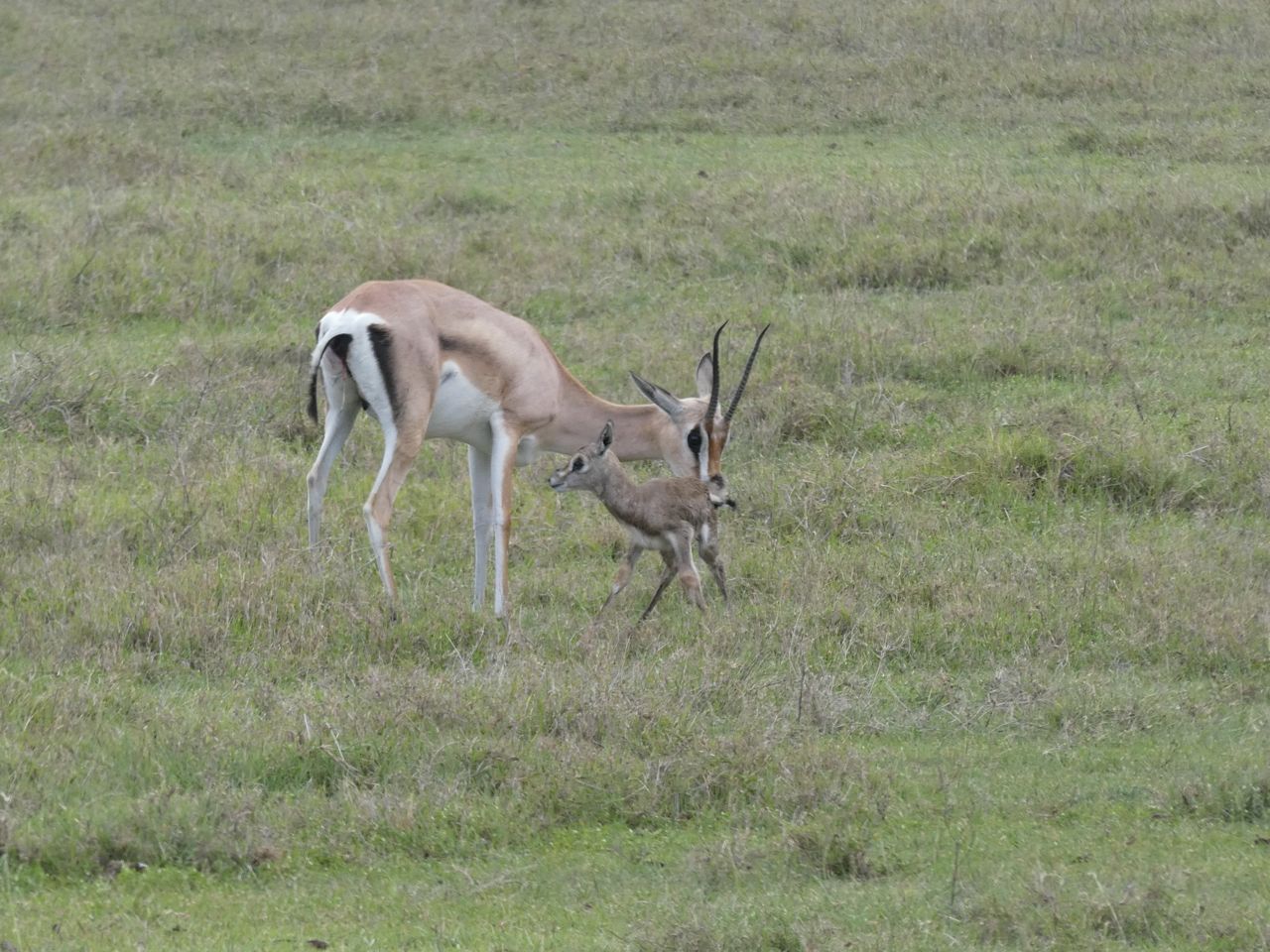 A newborn Thompson's gazelle standing up for the first time a few hours after being born.