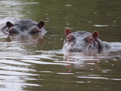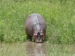 hippos are highly dangerous on land. The can outrun a human and they will kill you