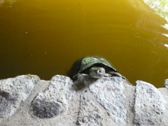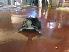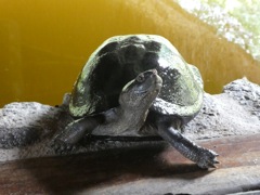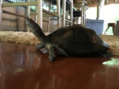 This is Terry the terrapin. He lives at the lodge and occasionally comes out of his pond to stroll around and beg for food.