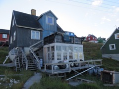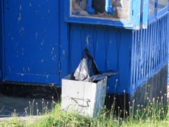 Sewage is also removed by truck. It's in a black plastic bag on the right side of the house.