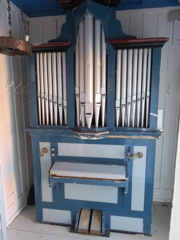 An old pipe organ inside a building once used as a church. Later it became a meeting hall.