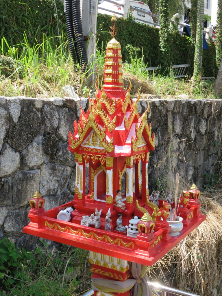 A Thai spirit house. Most houses have them to give the spirits of the ancestors a place to live.