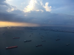 Arrival in Singapore after 17 non-stop flying hours. This boat-filled straight looked the same as it did 2 years ago.
