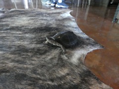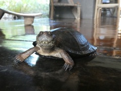 This turtle lived in a pond next to the lobby. He would come out and wander around begging for food when people were around.