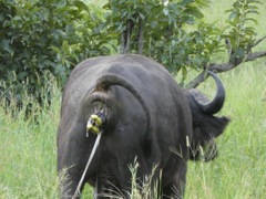 A water buffalo in the process of giving birth. Unfortunately, it got dark before she finished.