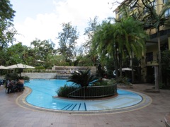 This cyclist is hitching a ride up a steep hill, a fairly common practice here.