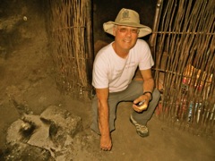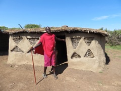 The son of the chief. No, he's not super tall, and the houses are not quite as small as they look. They are partly underground.