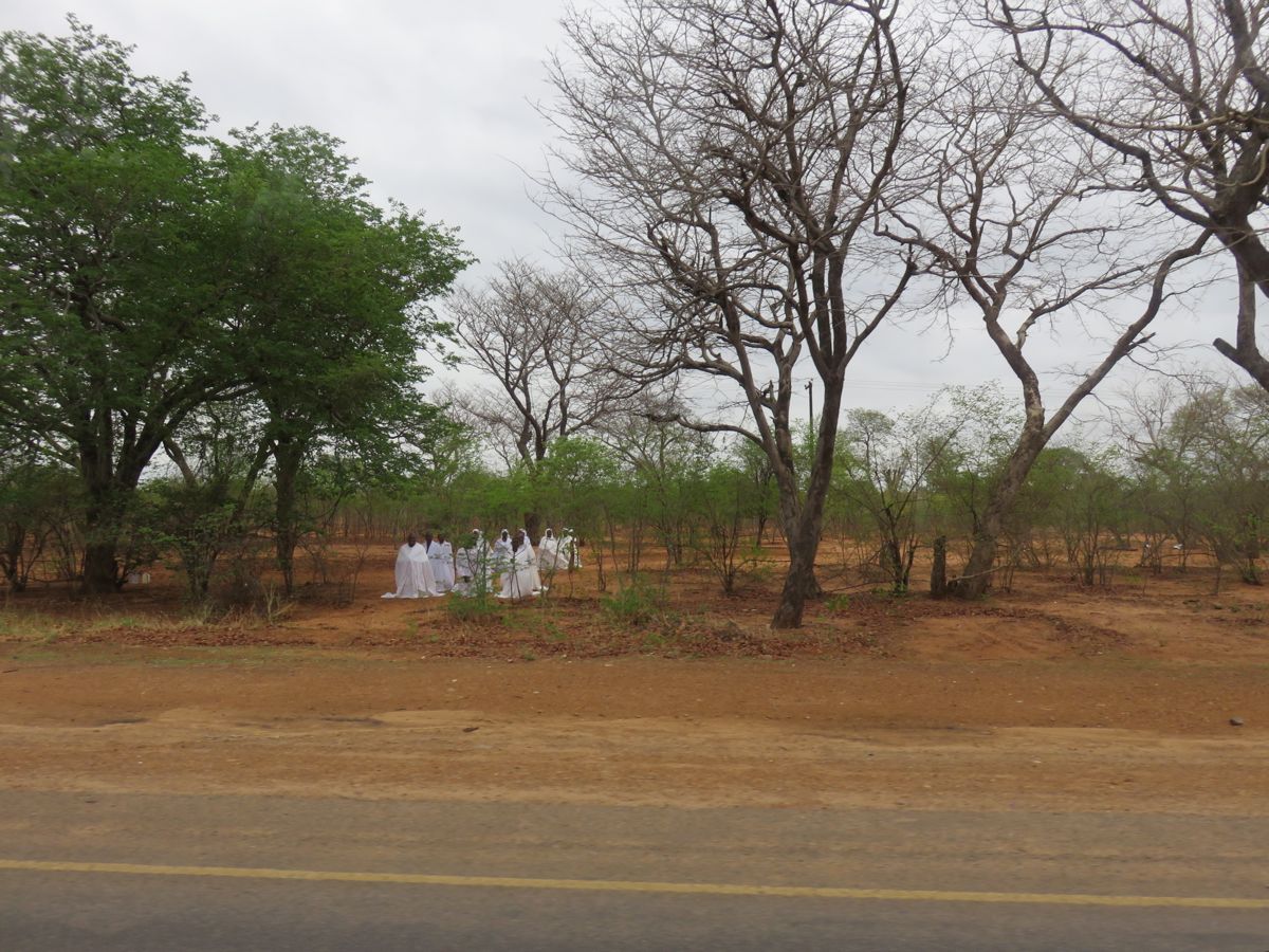 Christian worshippers. They stay out here even if it rains (and it did).