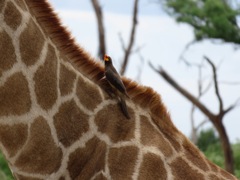 Oxpecker. They pick ticks and other parasites off large mammals.