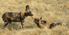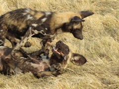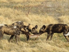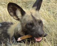 The puppies found an impala leg and very democratically broke it into 4 pieces so they could each have one.