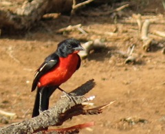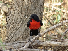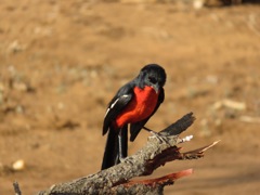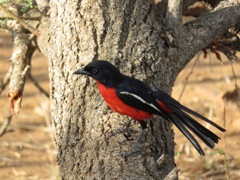 Scarlet breasted shrike. Some consider this the most beautiful bird in Africa.