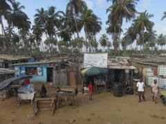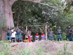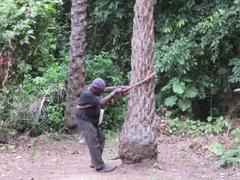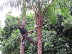 Climbing the tree to knock down coconuts. The coconut wine was terrible.